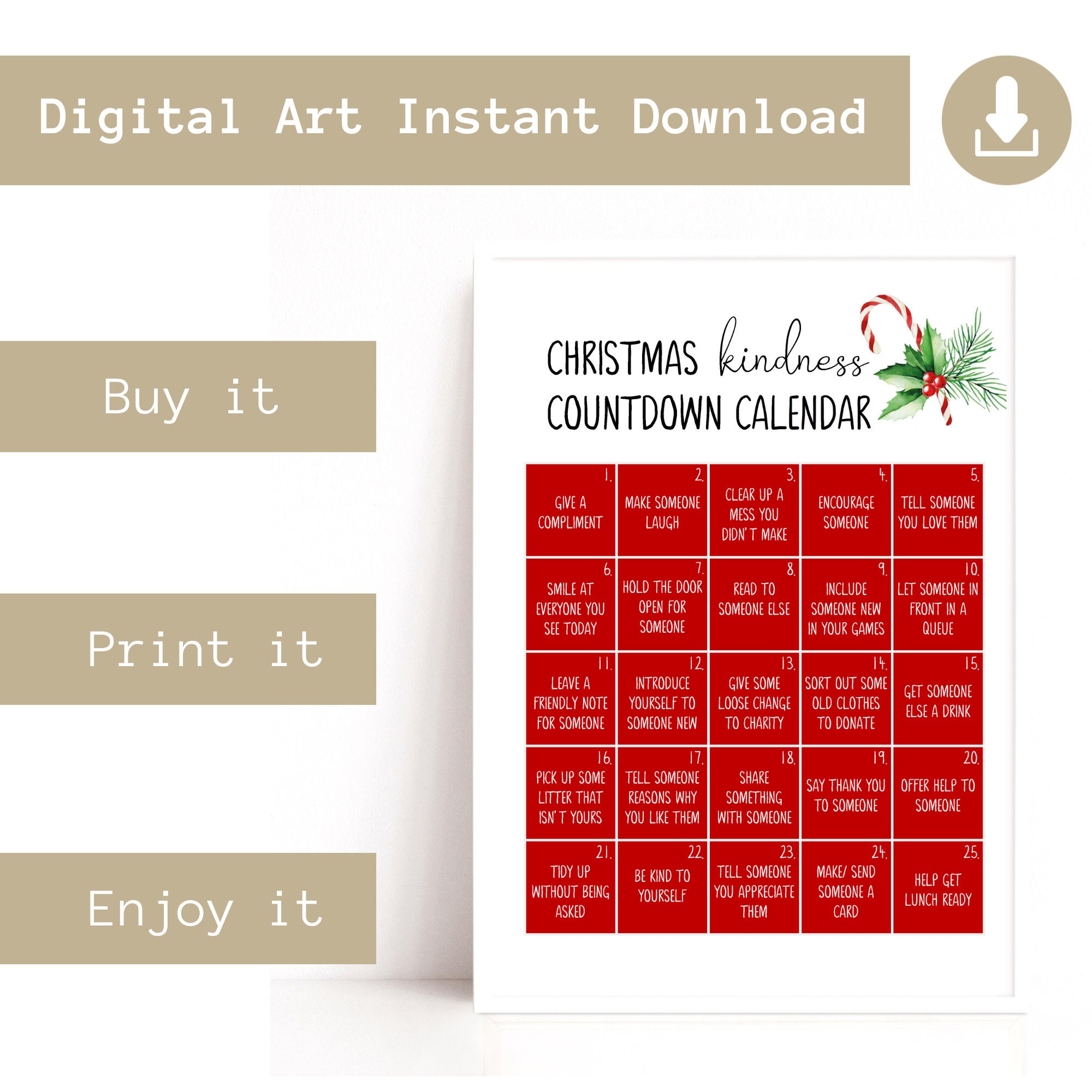 This print makes a great new Christmas tradition to start, with 25 days until Christmas and 25 acts of kindness to tick off.