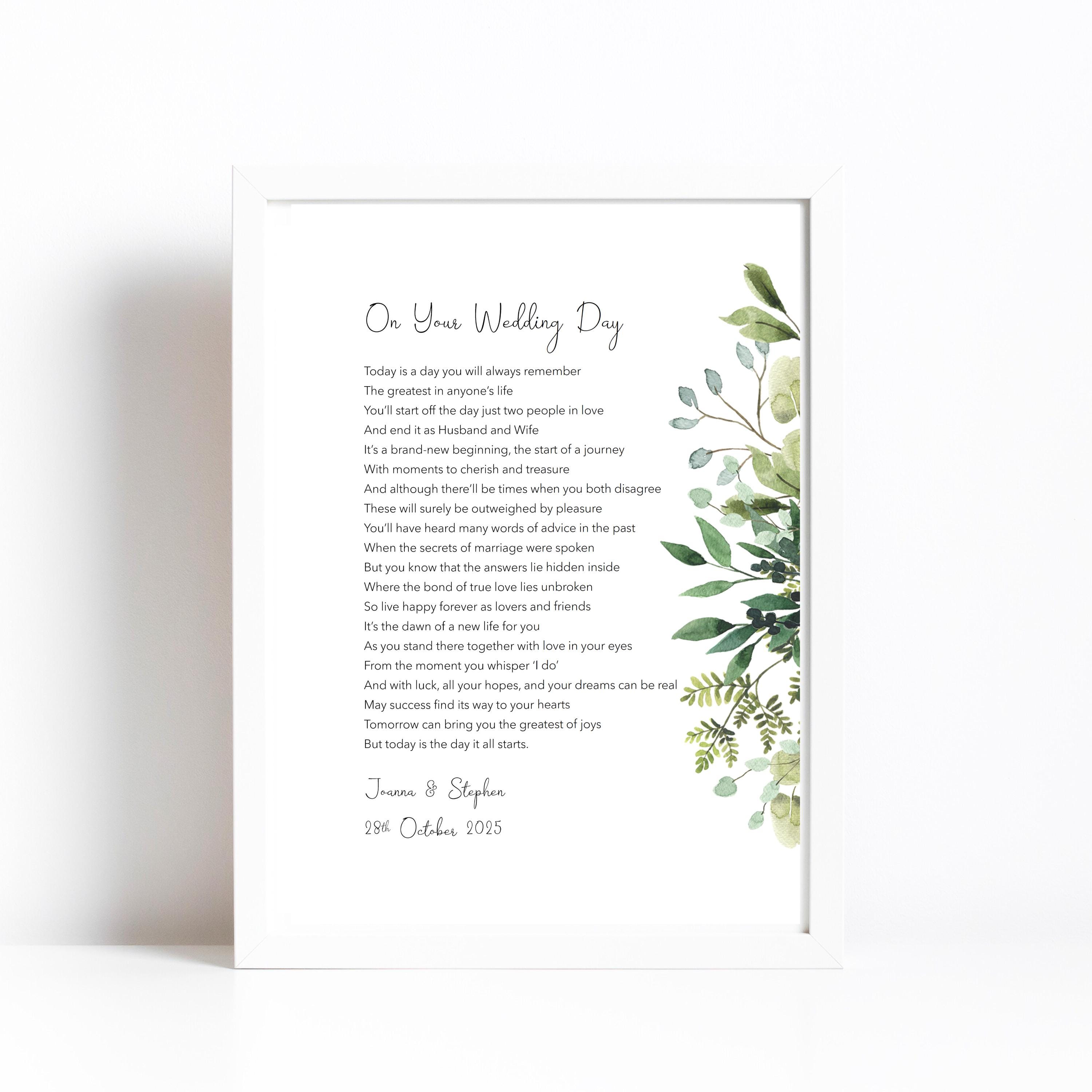 This print can be personalised with the names of the Bride and Groom and wedding date (as in listing photos) or left with just the poem and no additional text.