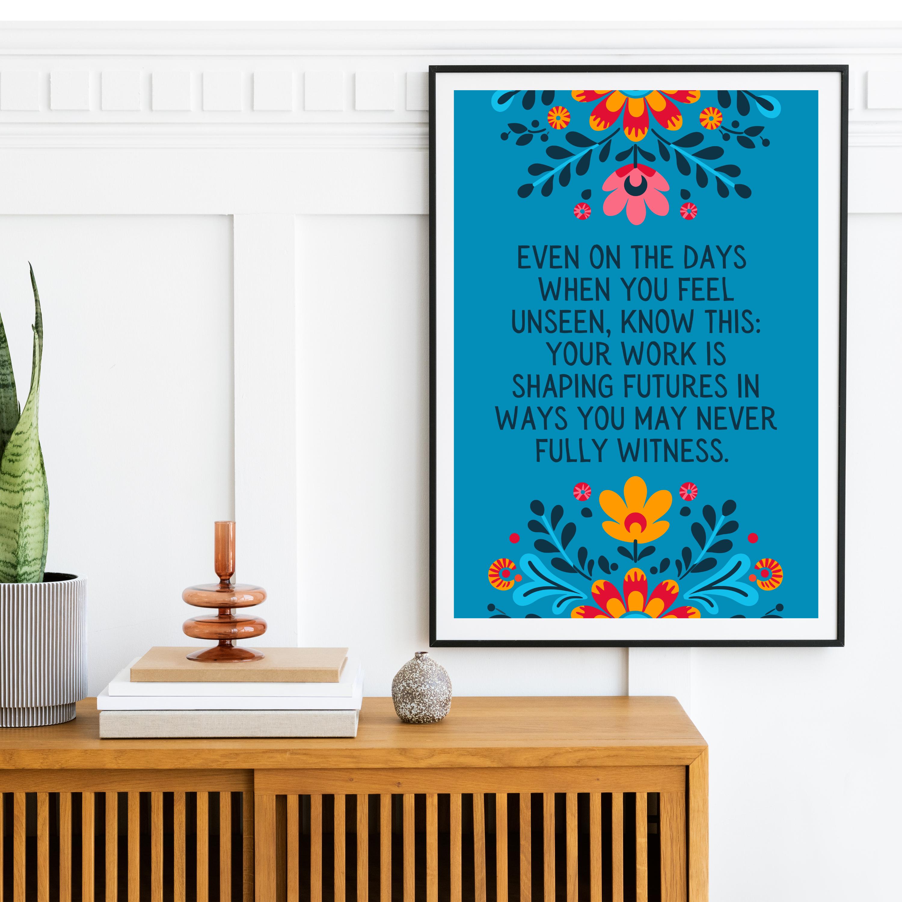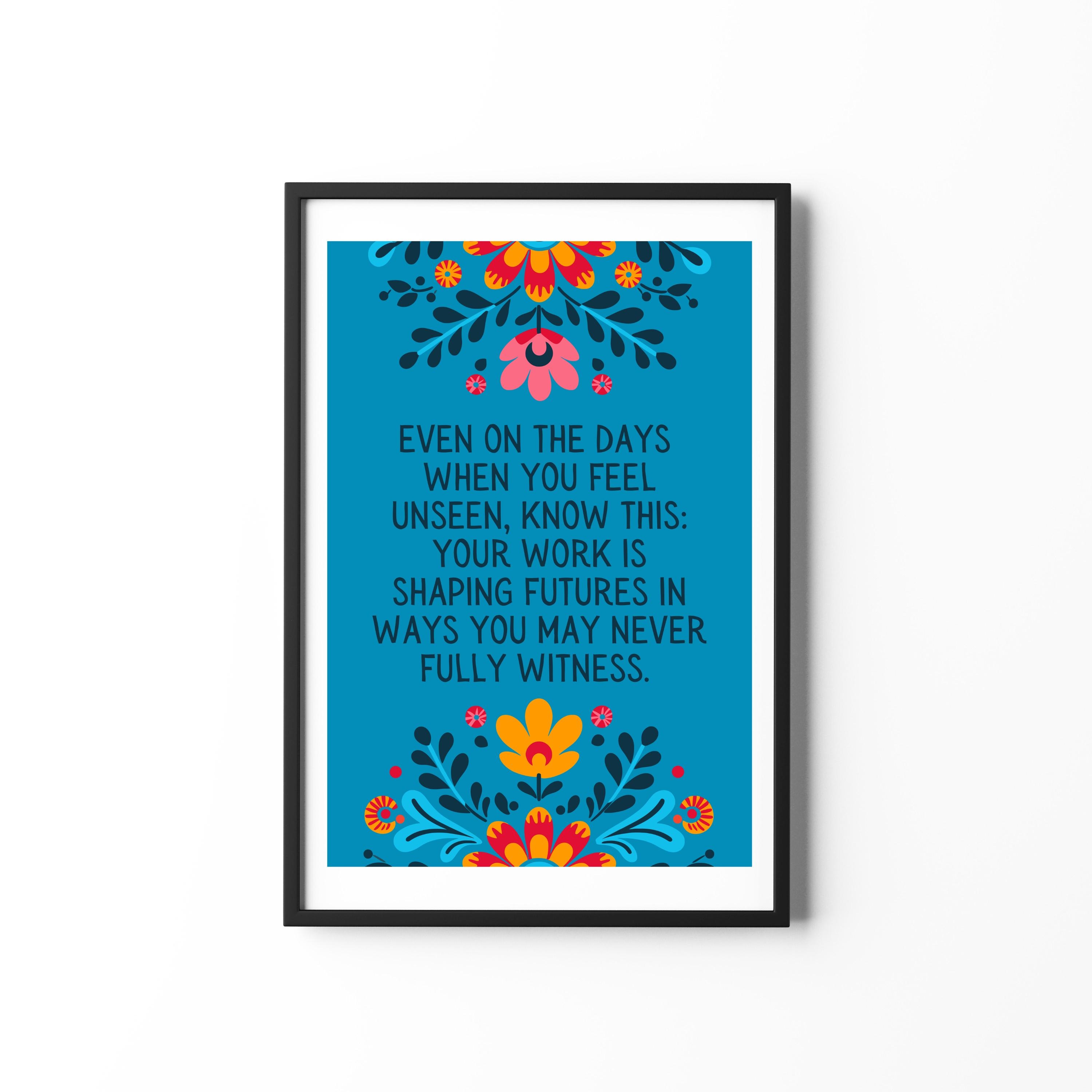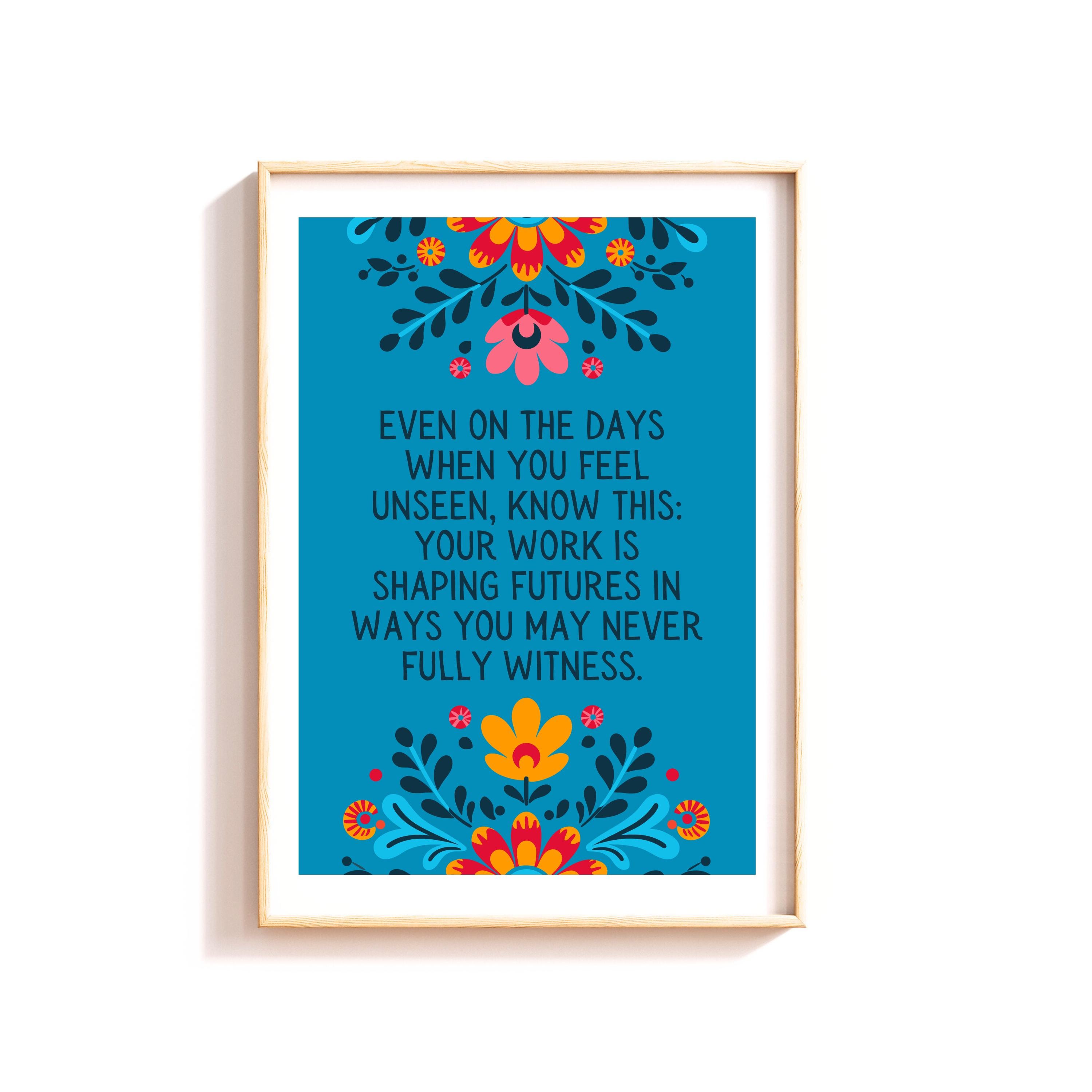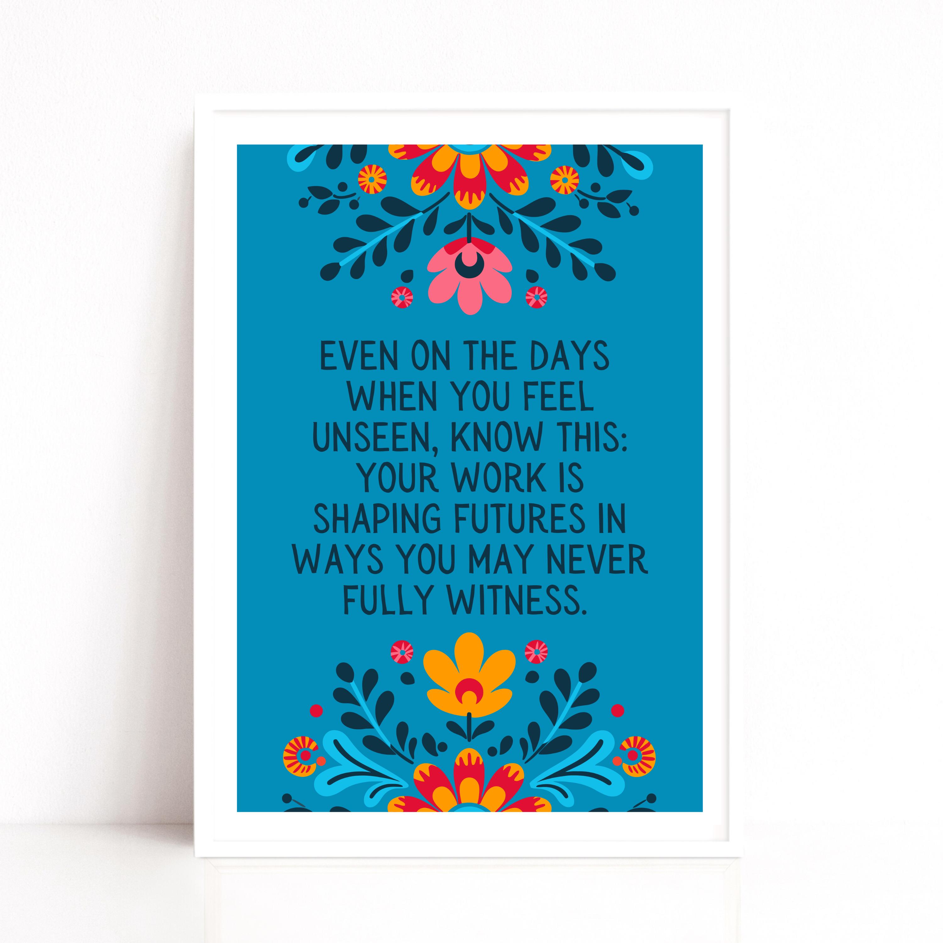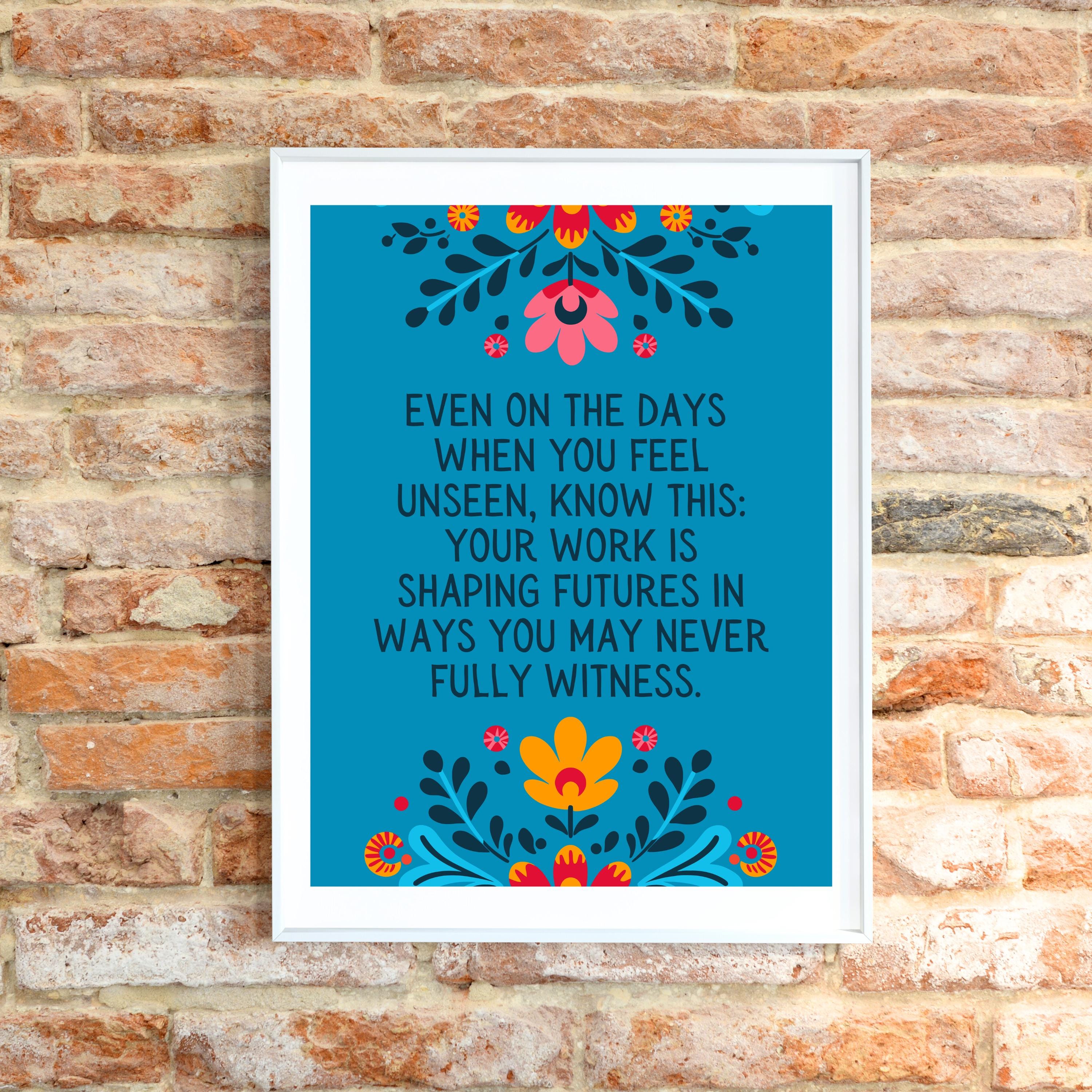 Teacher quote print featuring a bright, colourful floral design and teal coloured background.
