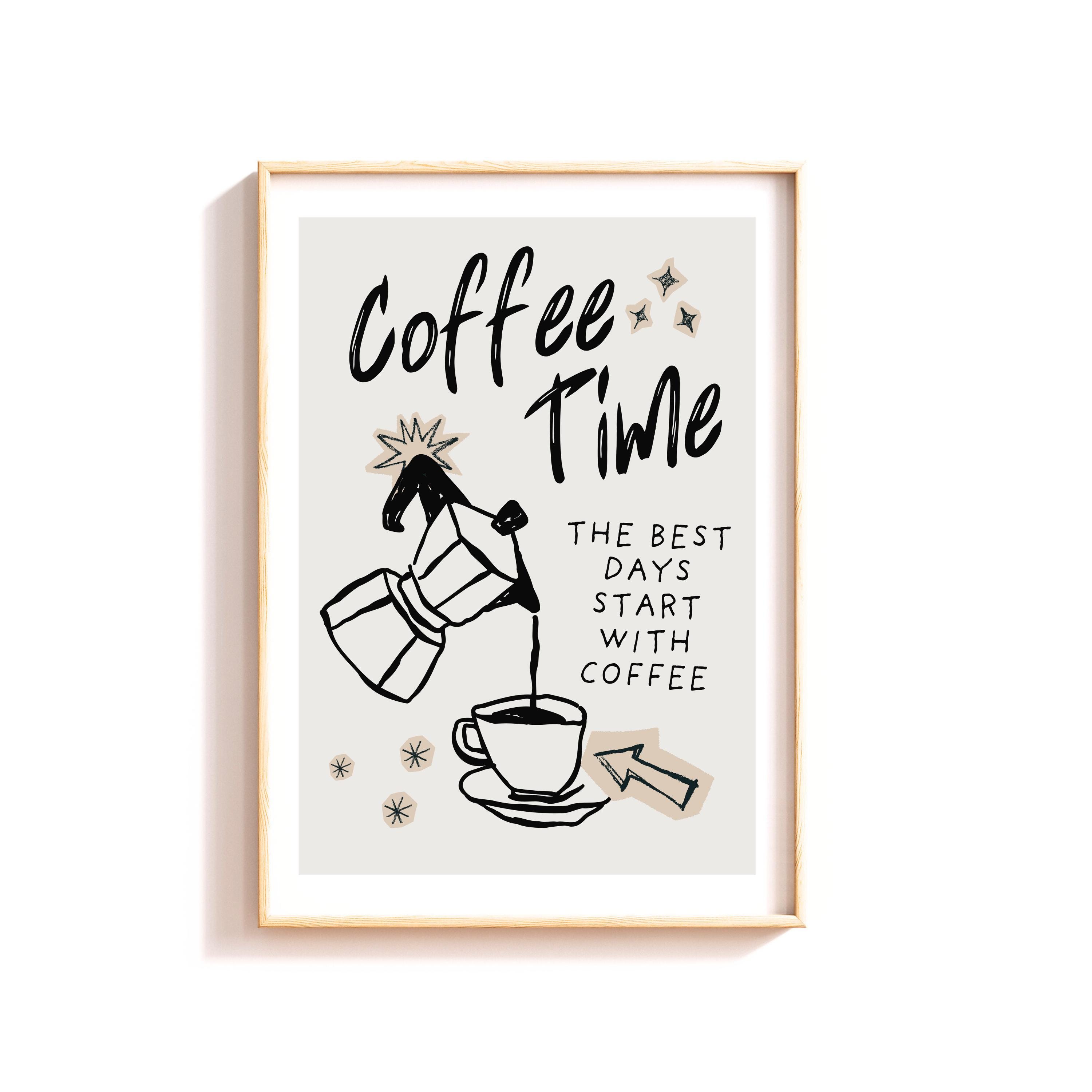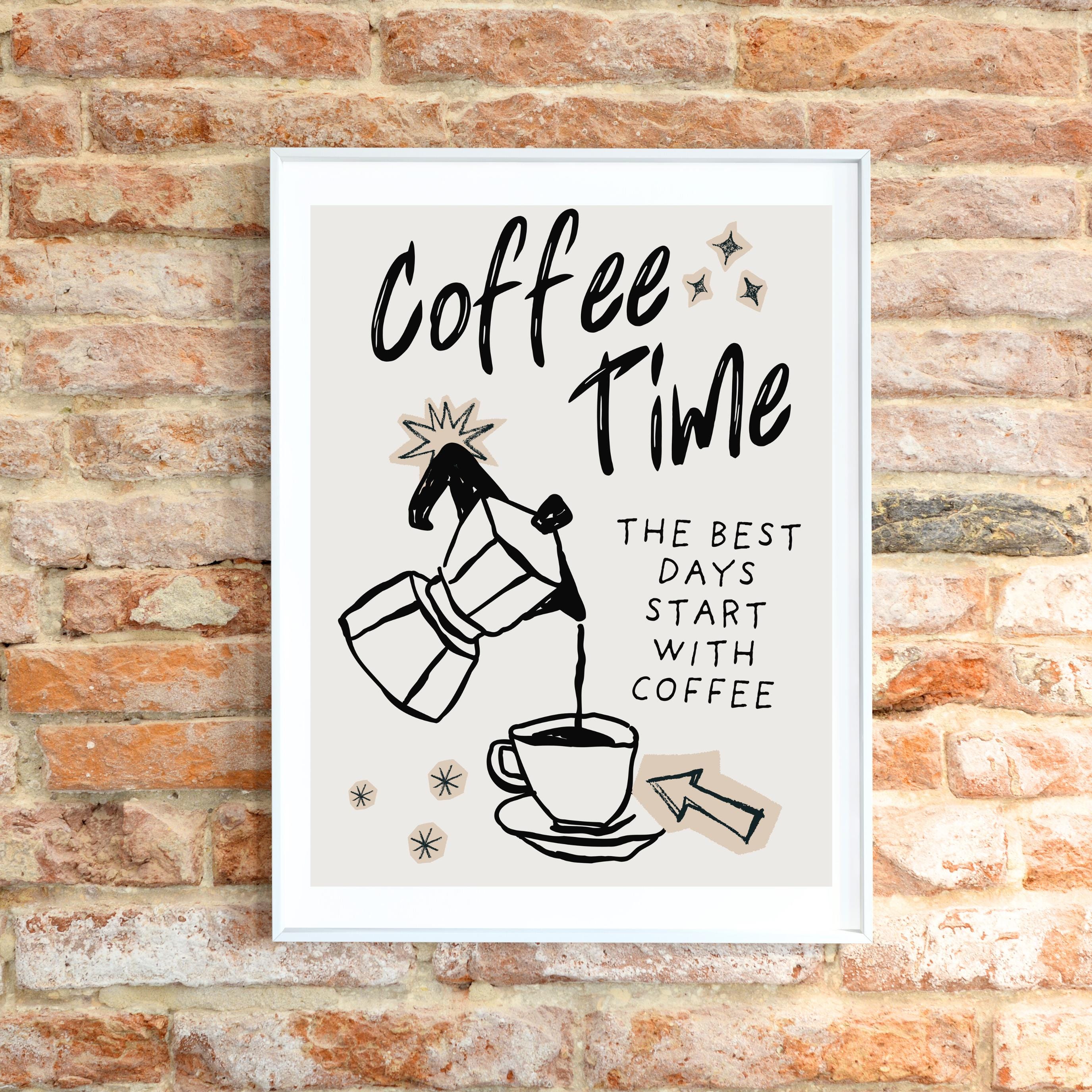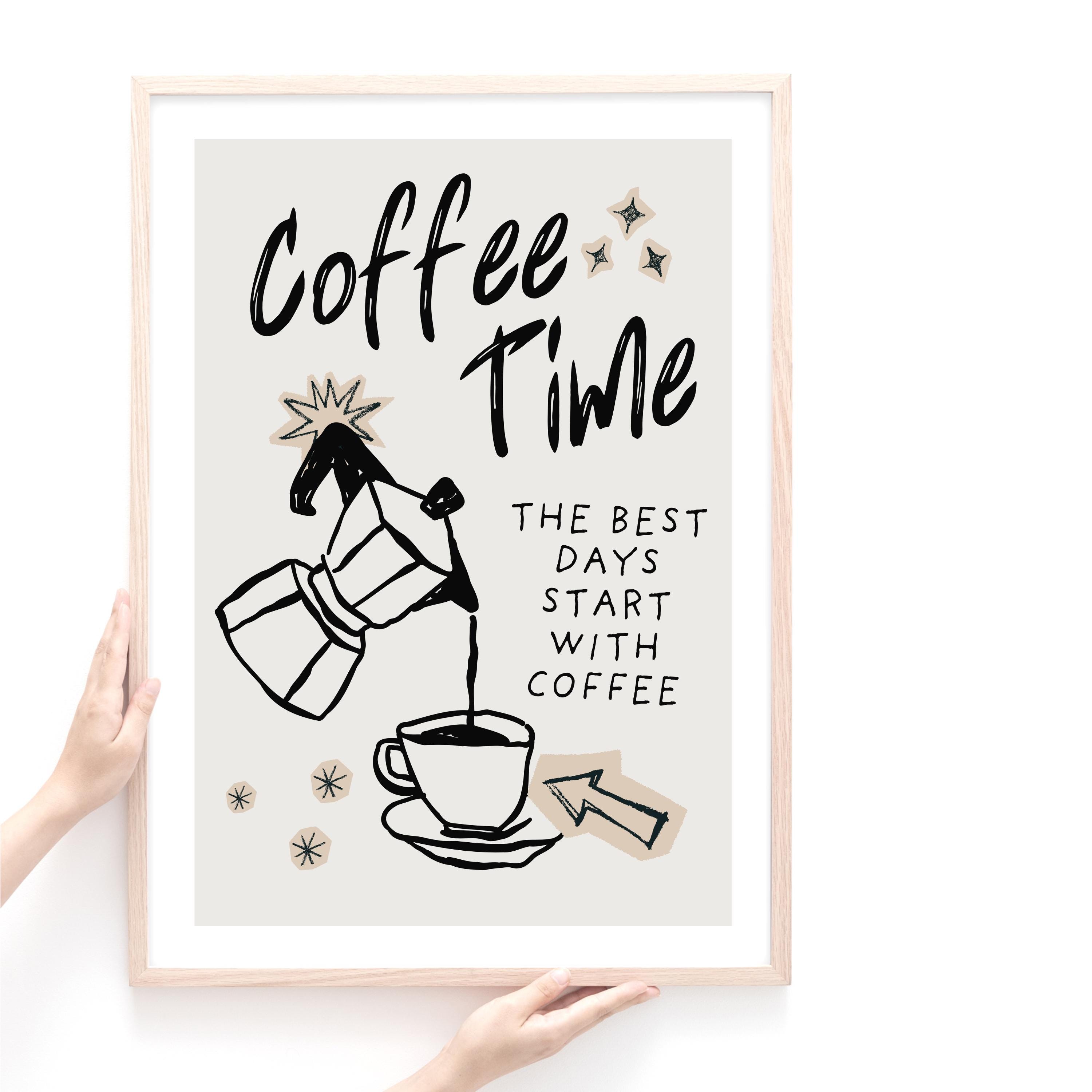 Coffee Time Kitchen Wall Art Print - This fun, retro diner style print adds a playfulness to any kitchen or café wall.