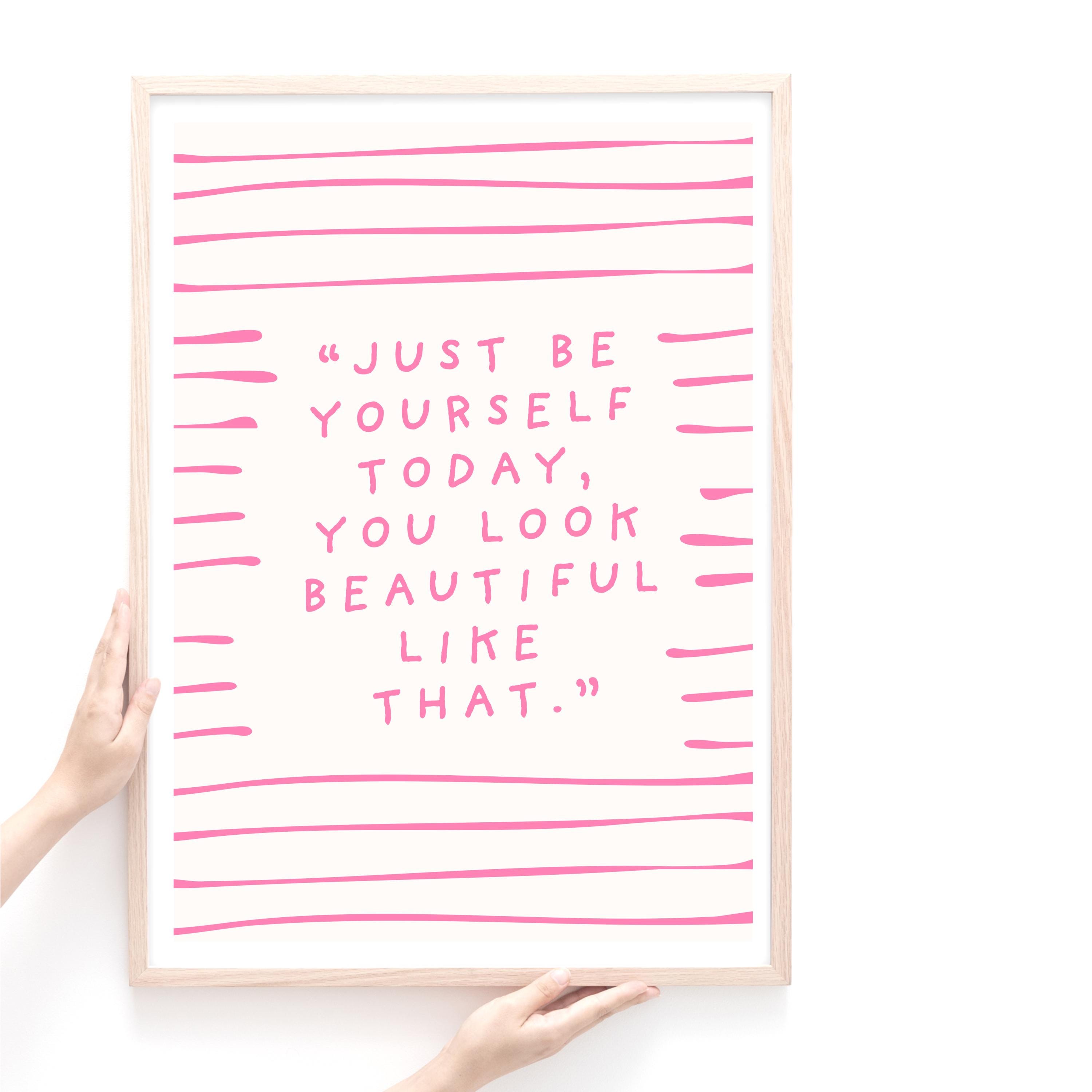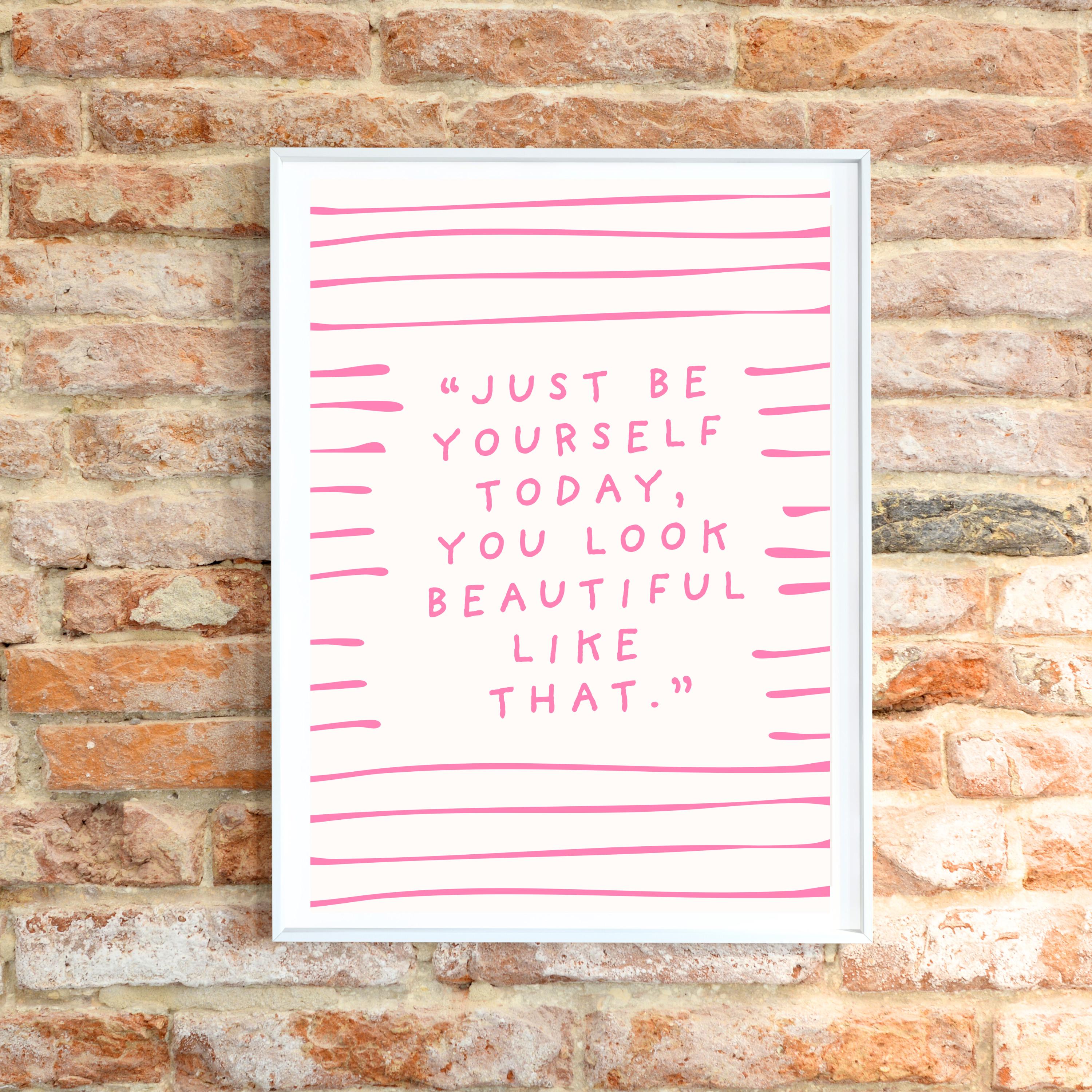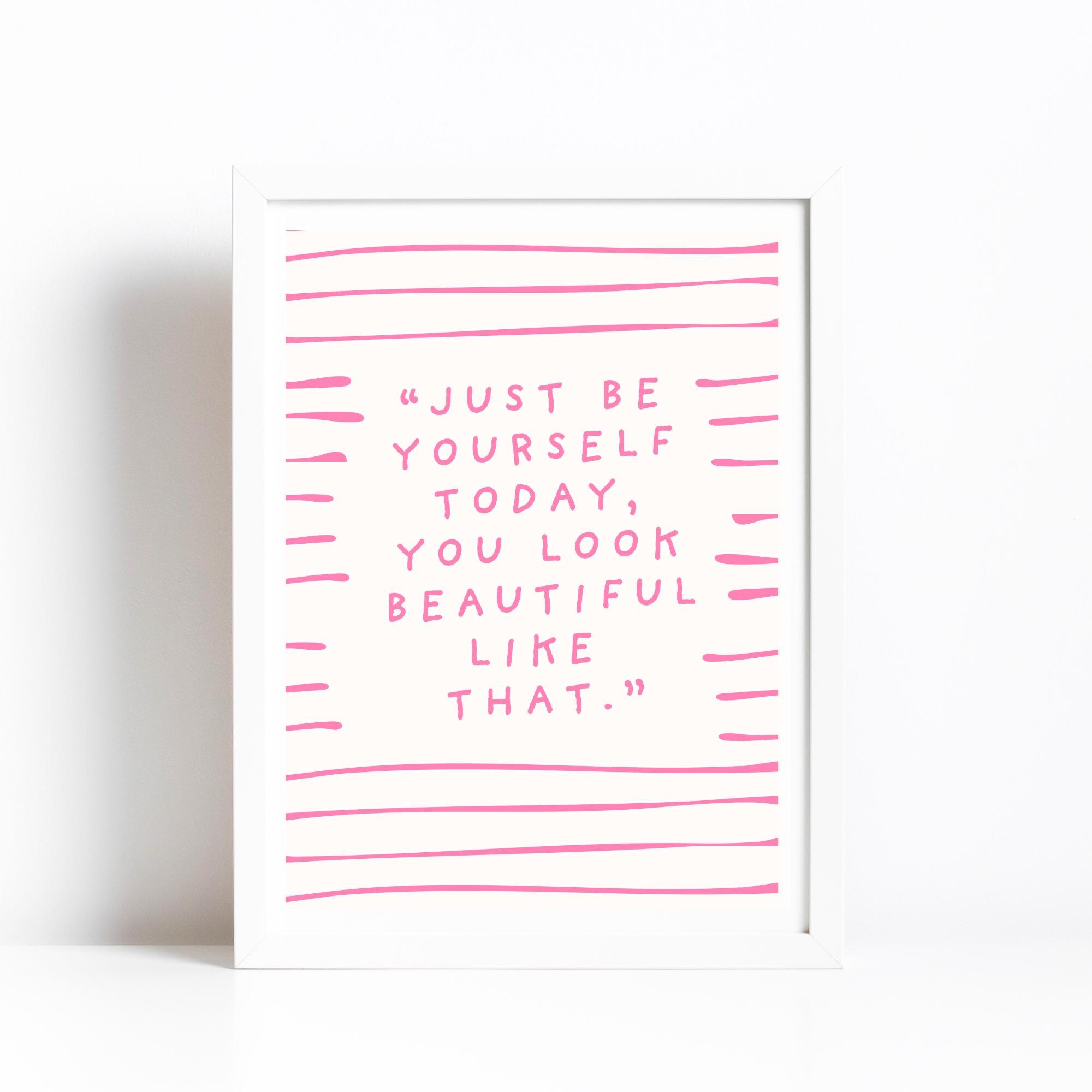Just be yourself today, you look better like that - pink and white quote print