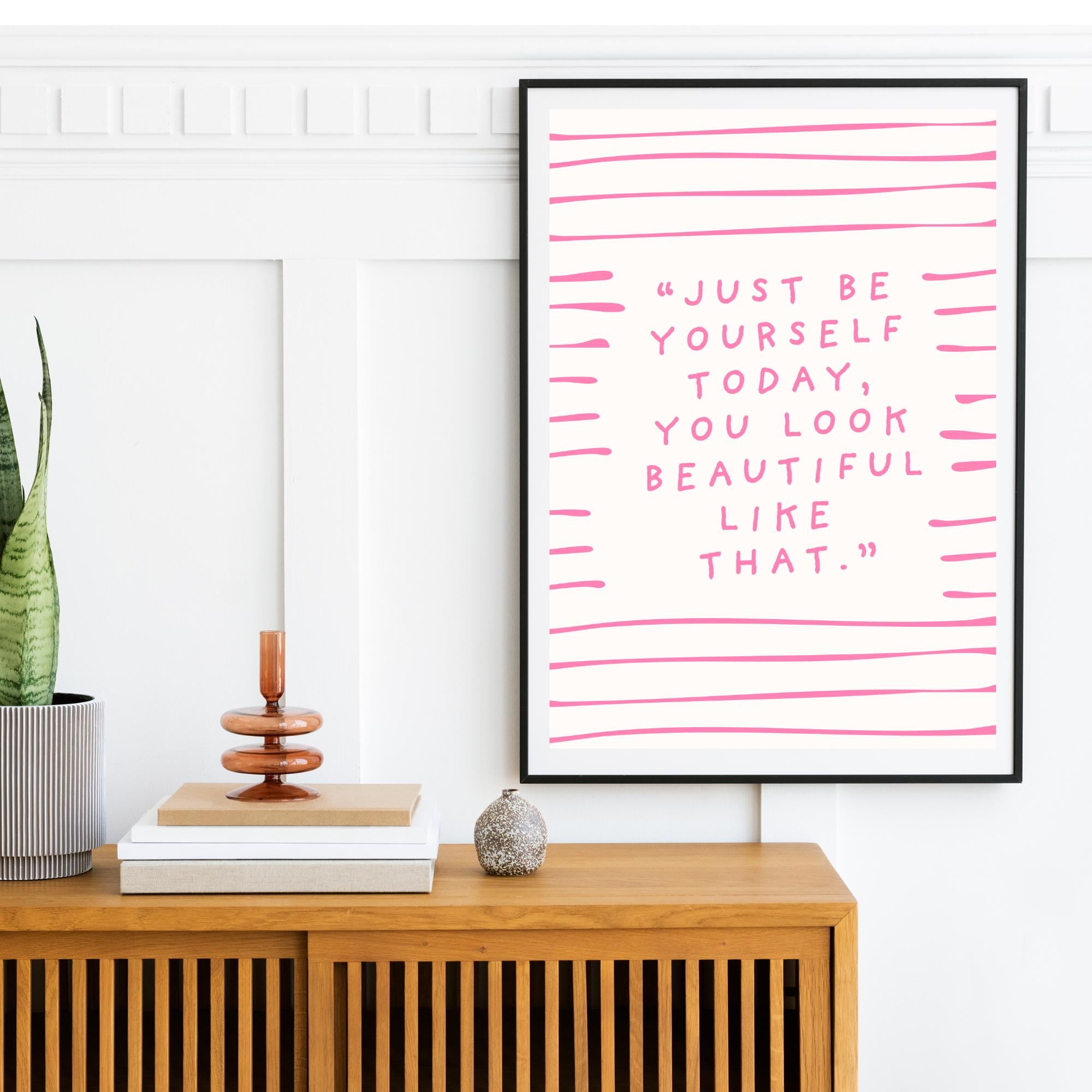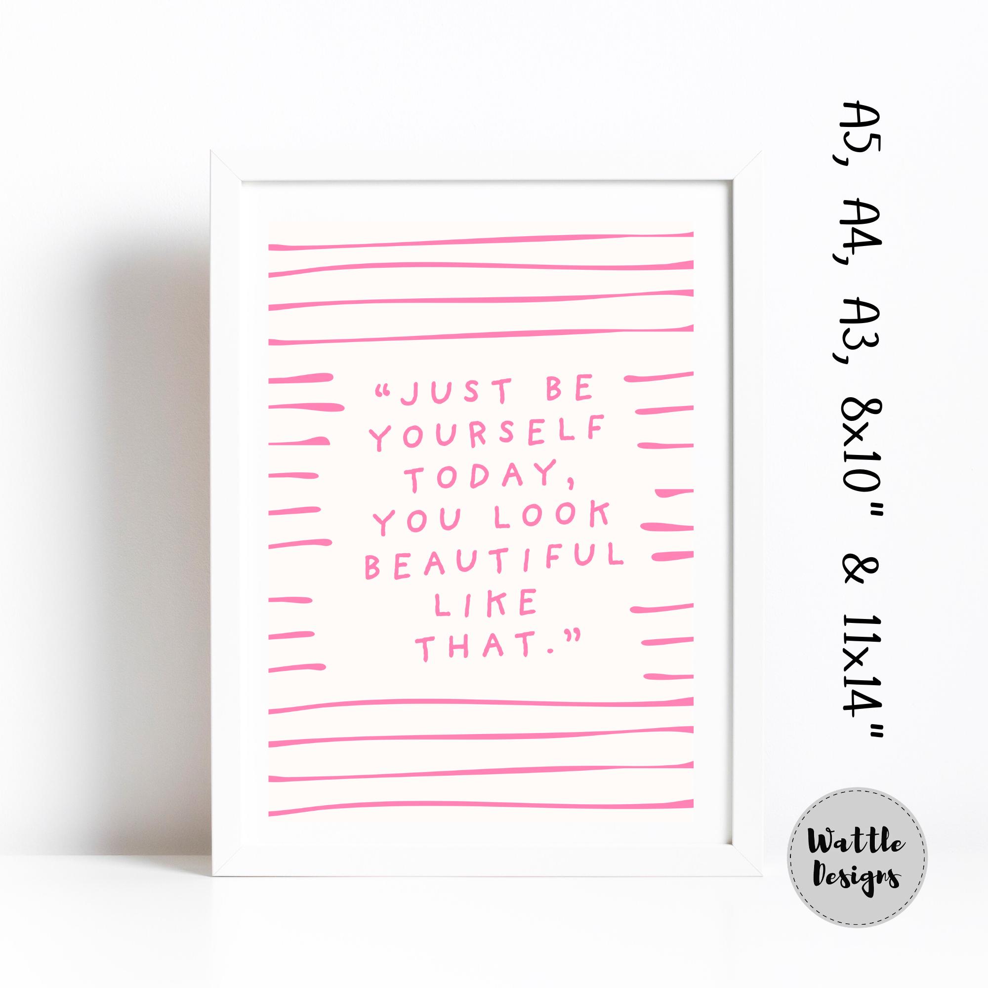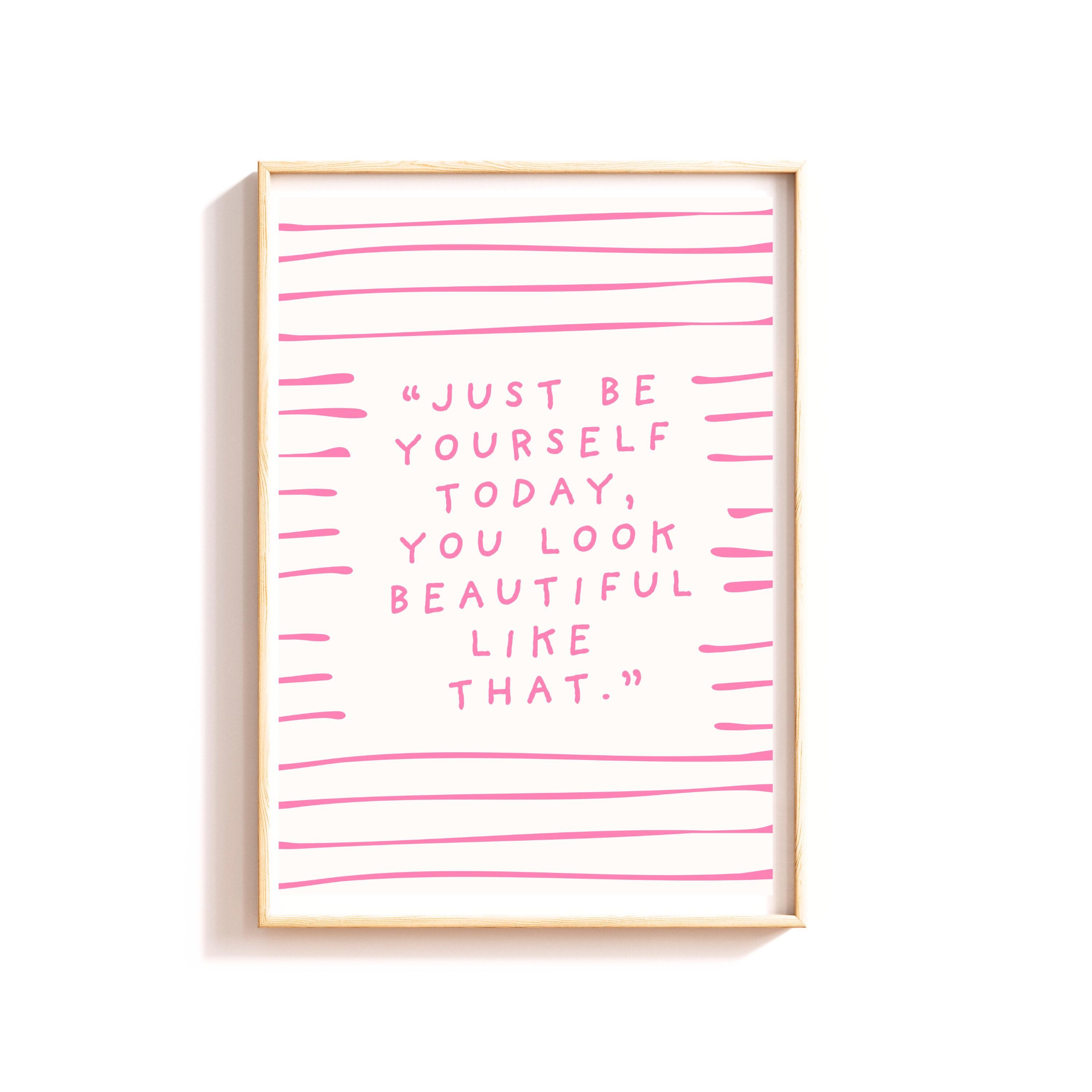 Just be yourself today, you look better like that - pink and white quote print