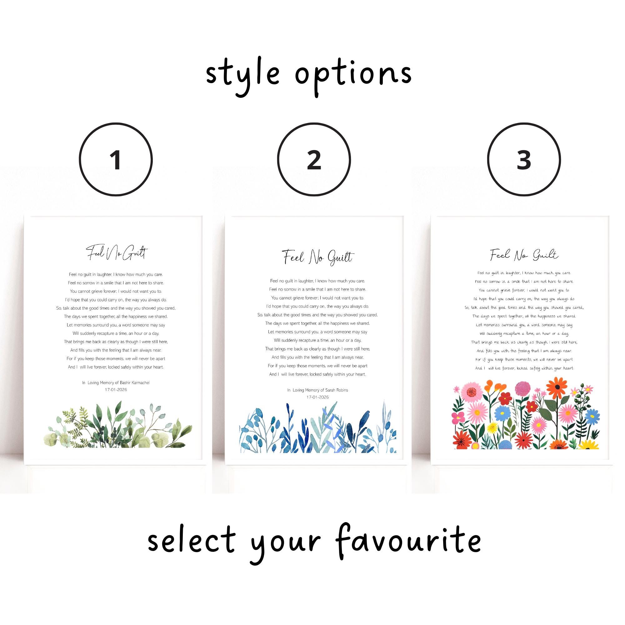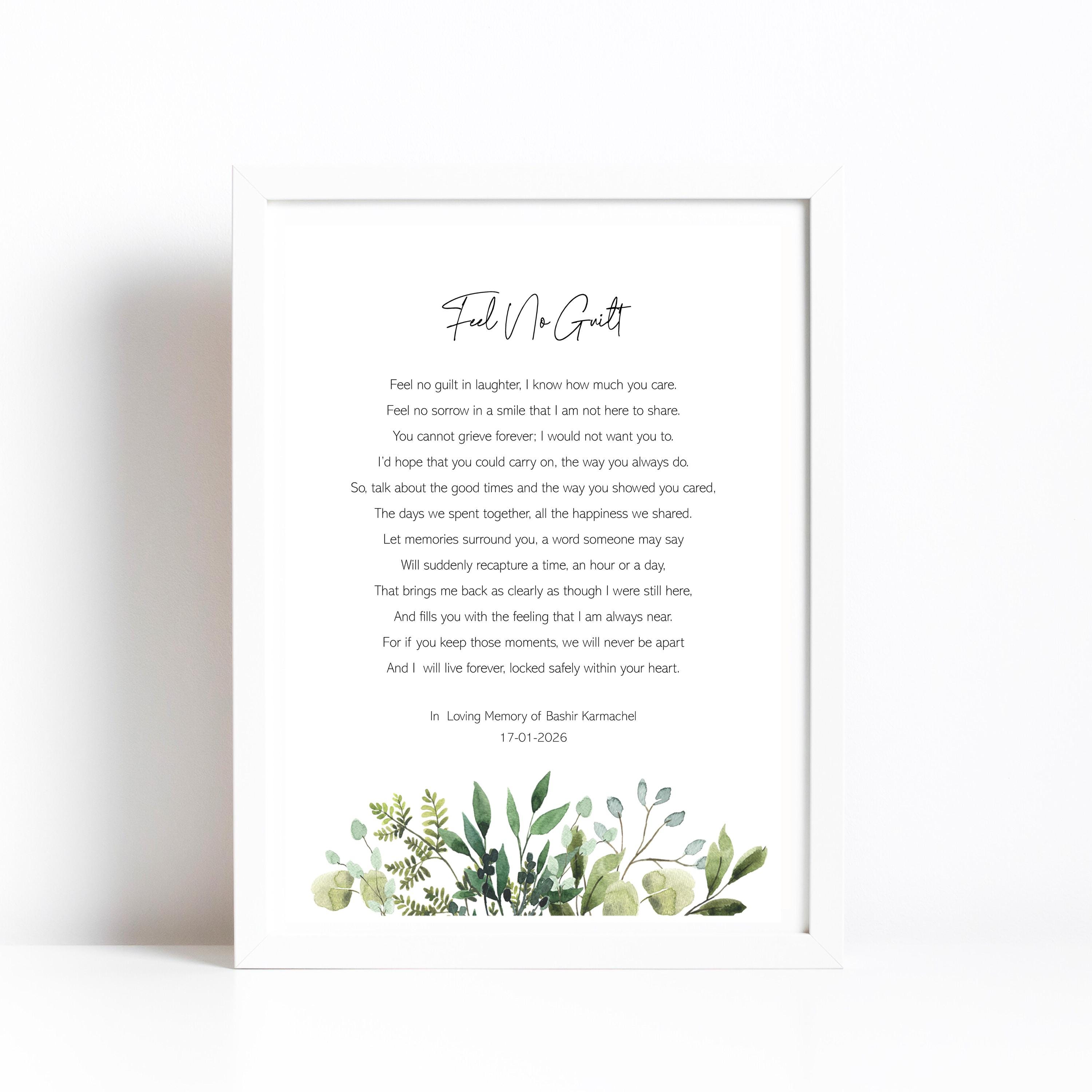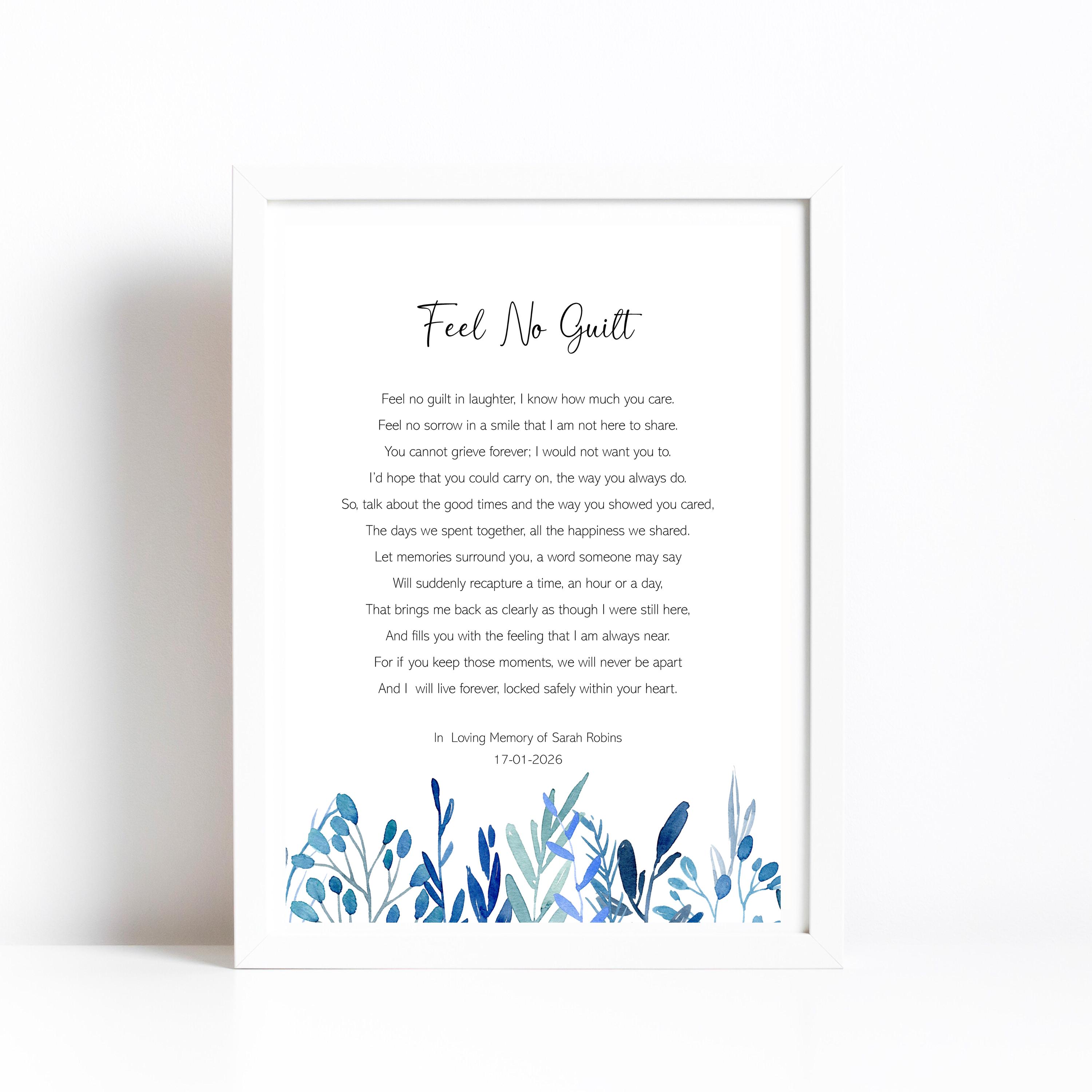 Feel No Guilt, bereavement poem print. Comes in a choice of 3 styles.