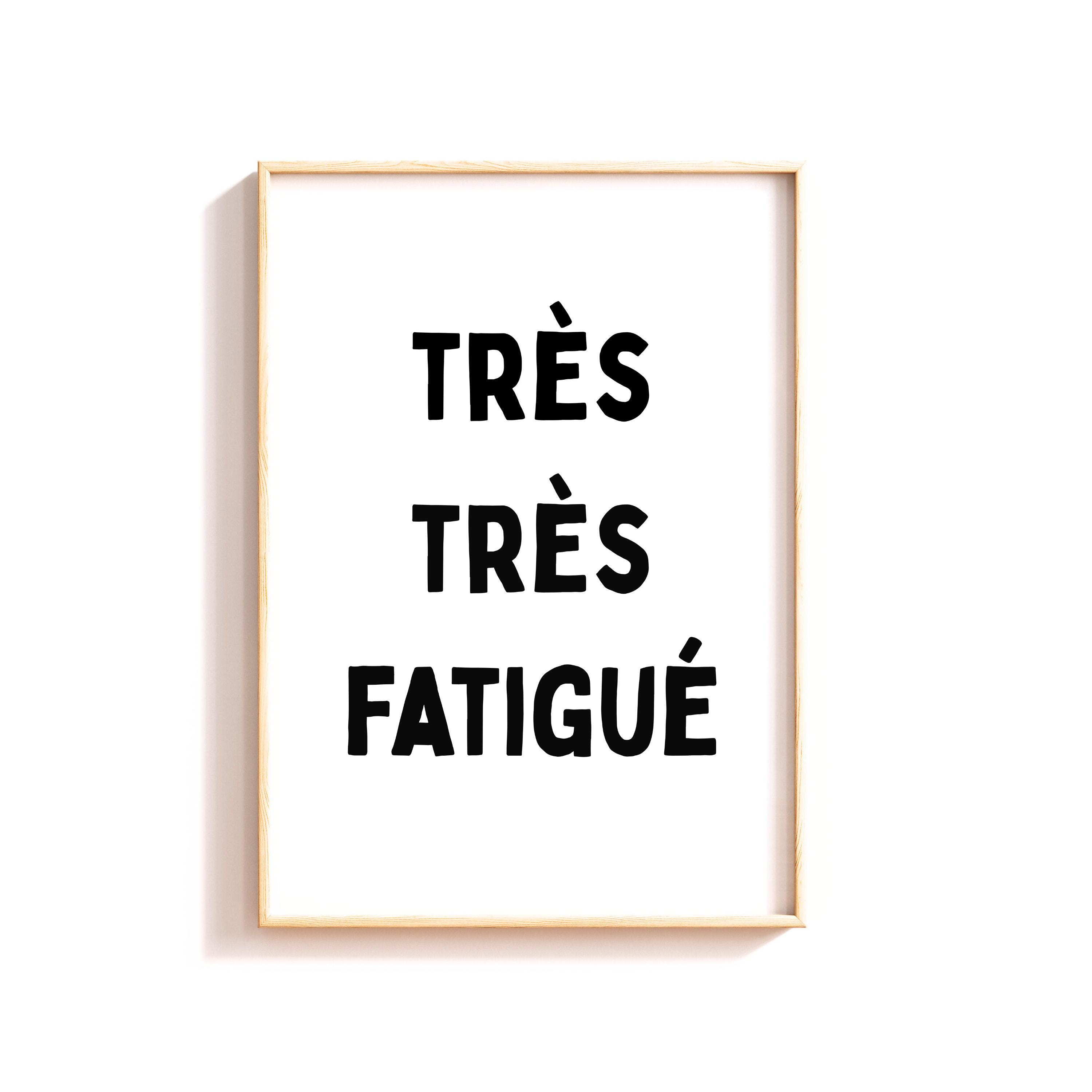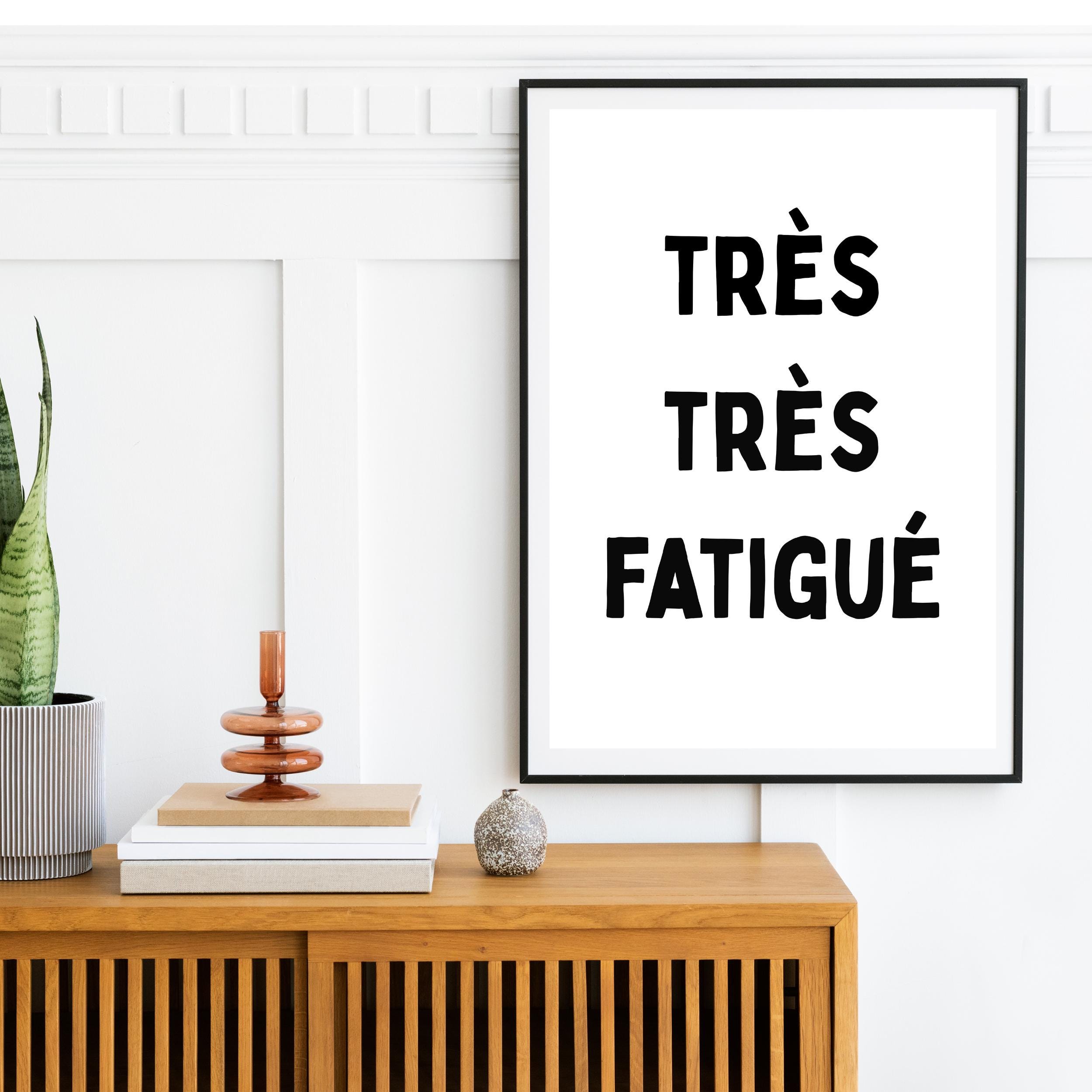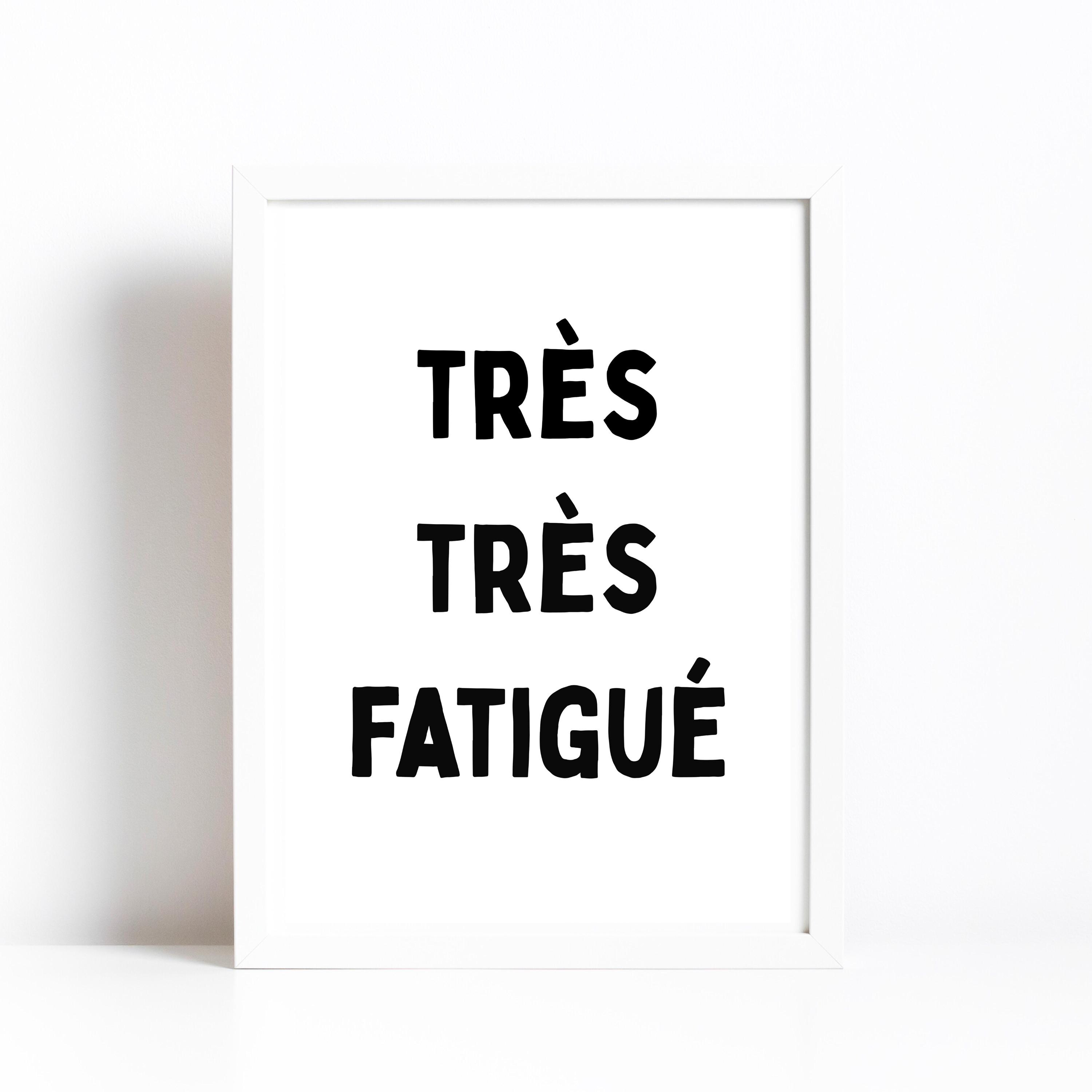 Tres Tres Fatigue (meaning very, very tired in French) Perfect for bedroom wall art.