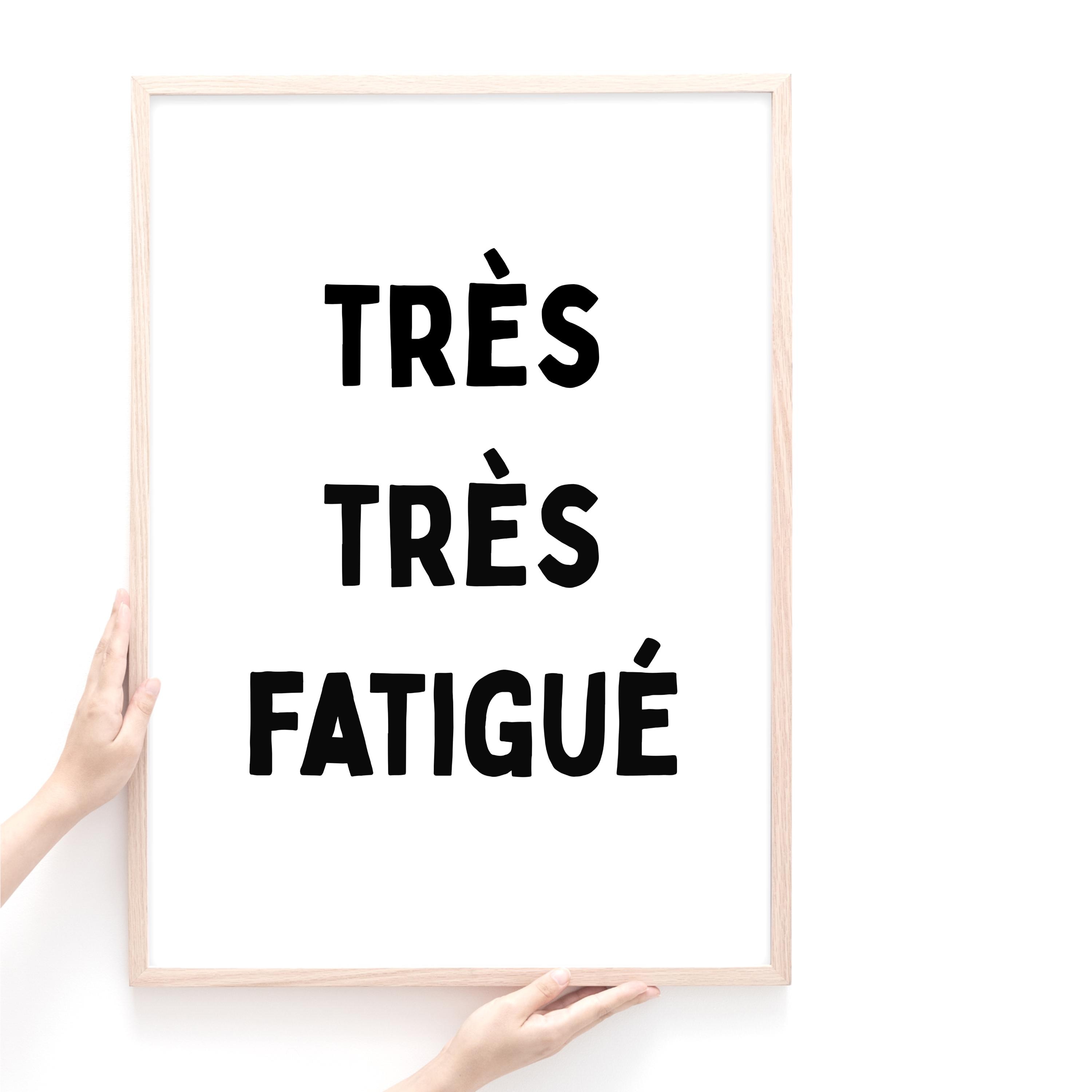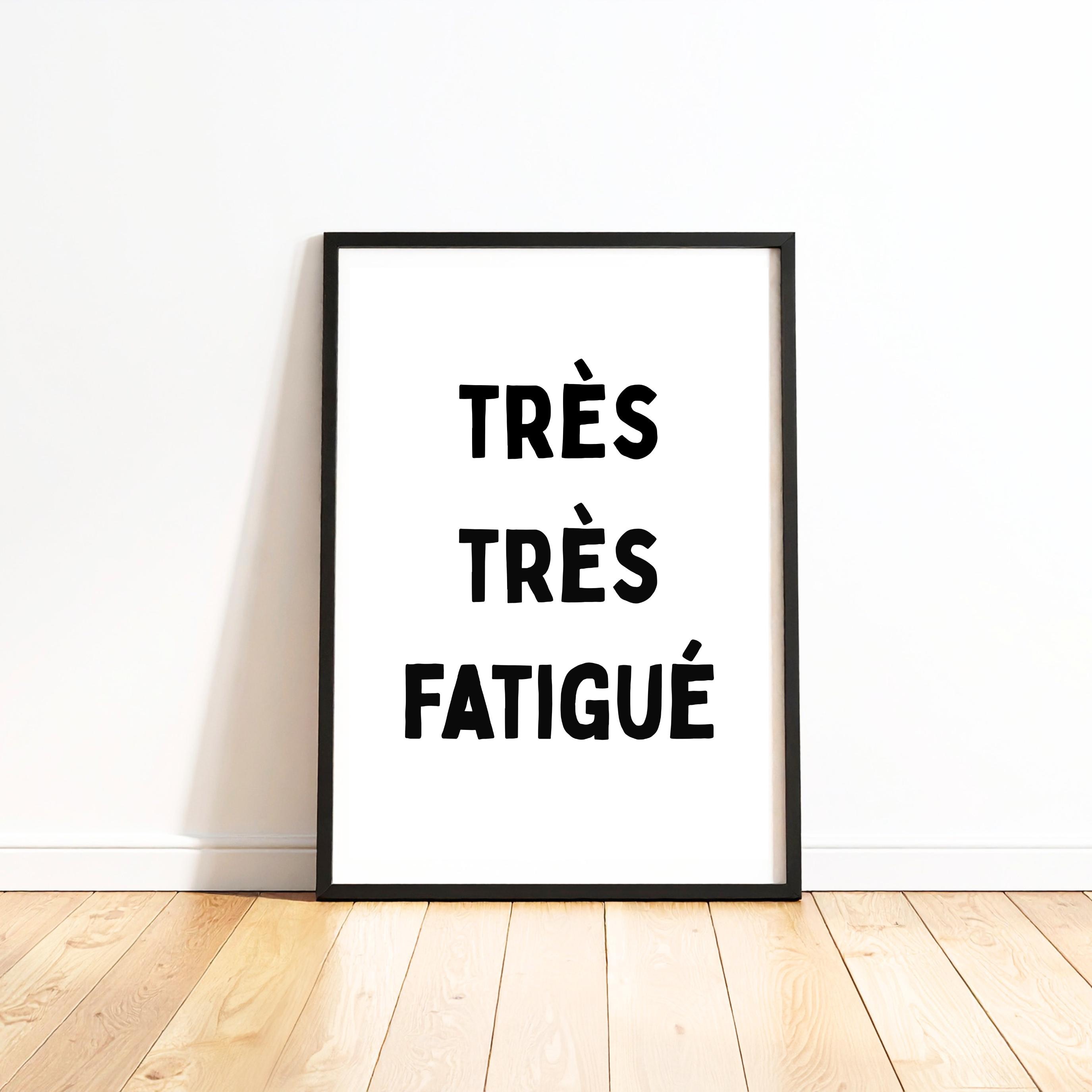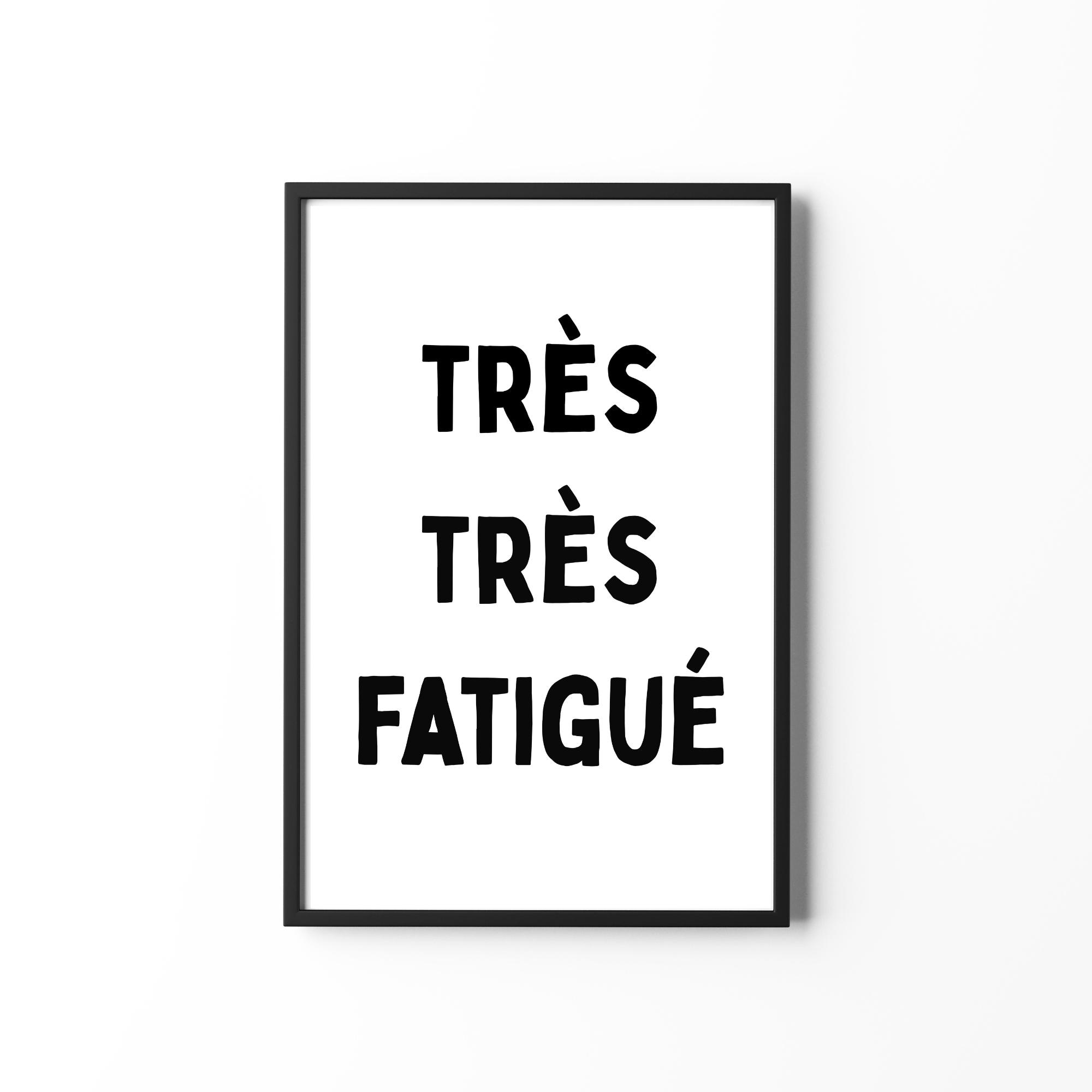 Tres Tres Fatigue (meaning very, very tired in French) Perfect for bedroom wall art.